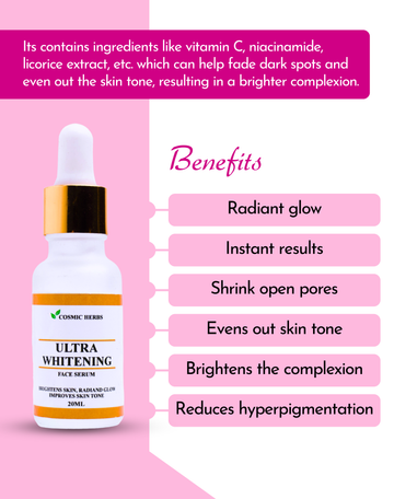Its contains ingredients like vitamin C, niacinamide, licorice extract, etc. which can help fade dark spots and even out the skin tone, resulting in a brighter complexion.
